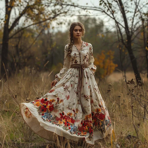 Frontier Blooms Chiffon Long Dress - VERRANOO