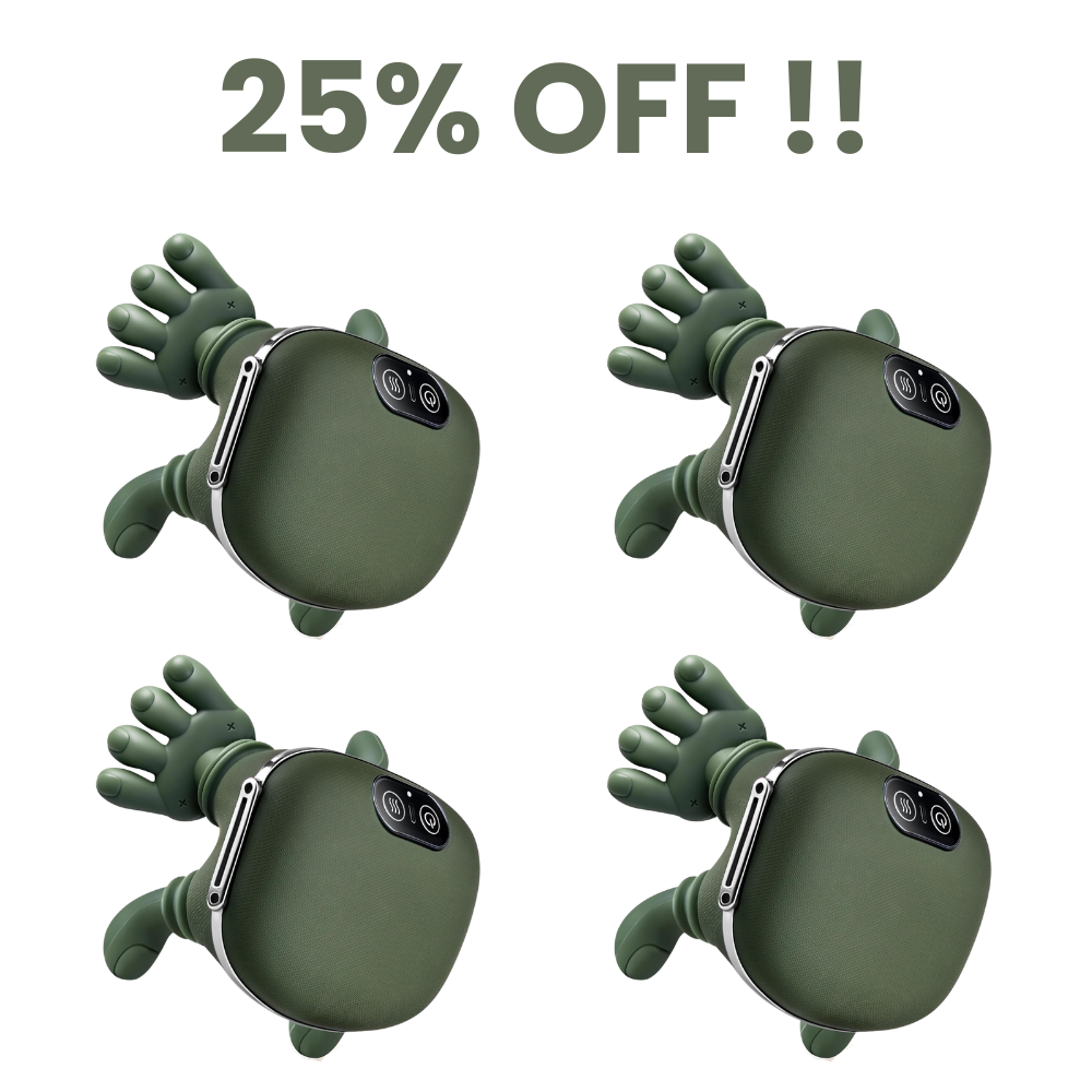 Unlike basic vibrating massagers, it kneads, presses, and moves like real palms and fingers.