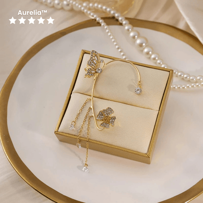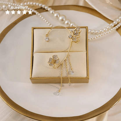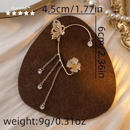 Drape yourself in effortless magic with the Aurelia™ Butterfly Zircon Ear Cuff, a fairy-tale inspired piece featuring a delicate butterfly and glimmering gold tassels. Designed for women who love Korean-style elegance without the commitment of piercings, this ear cuff brings a whimsical yet sophisticated touch to any outfit.
