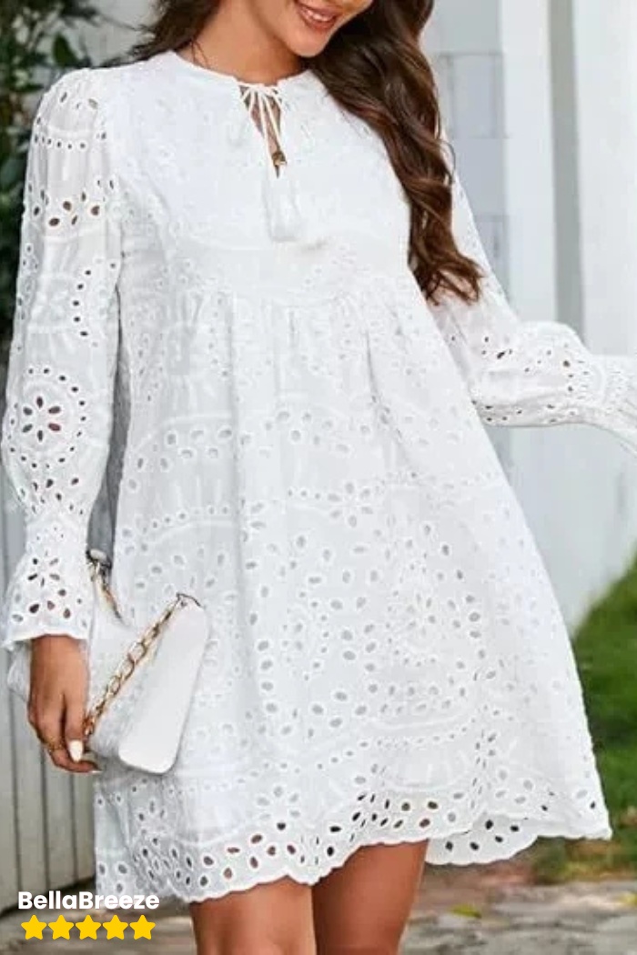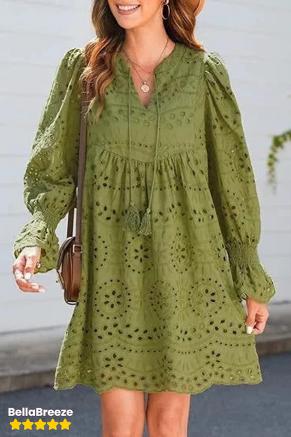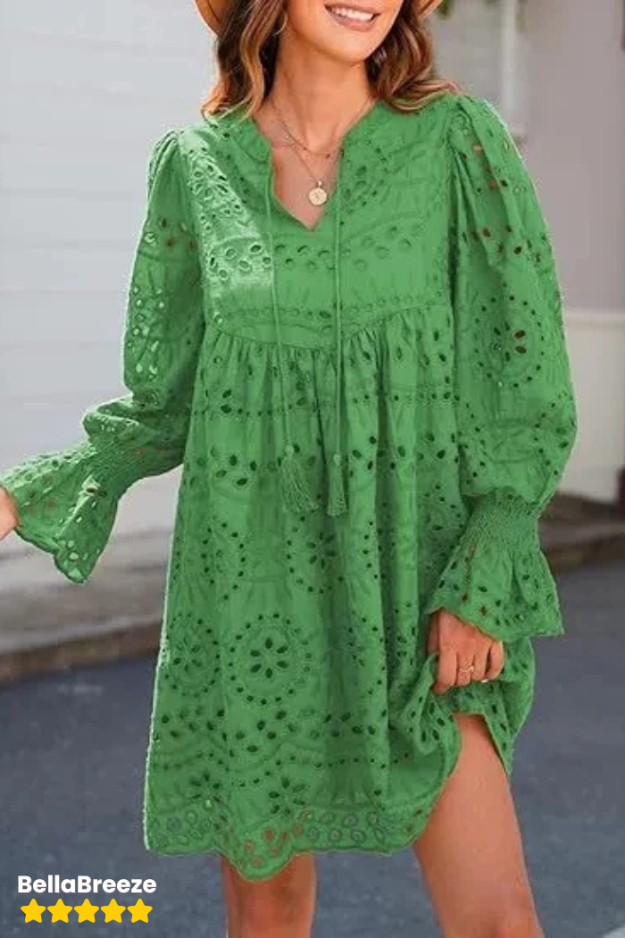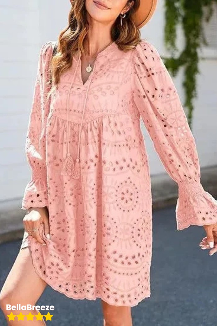 Step out in effortless style with the BellaBreeze™ Hollow-Out Midi Dress, your go-to for breezy elegance from spring picnics to summer holidays. With a chic hollow-out design, 7-sleeve coverage, and a comfortable midi length, this dress is a must-have for women who crave simple, refined beauty with a hint of allure.