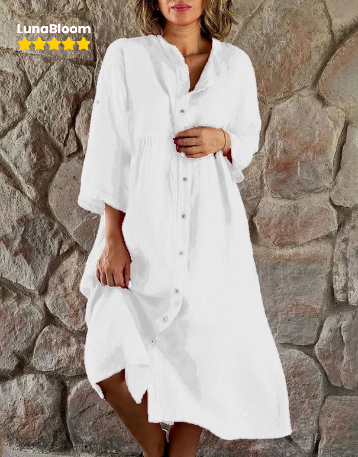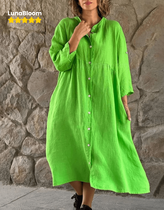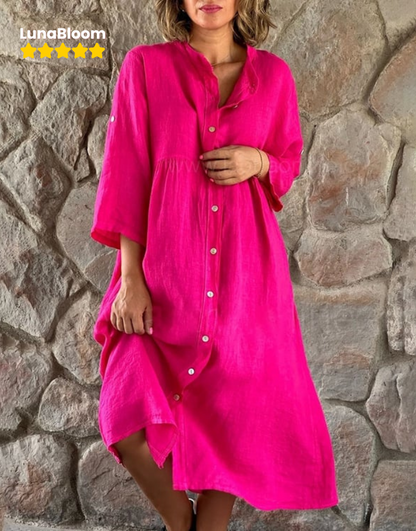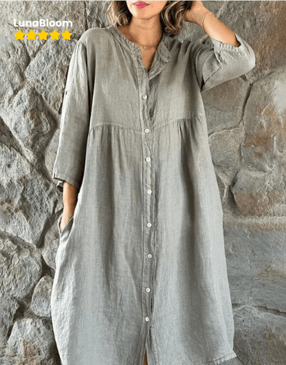 LunaBloom™ Cotton And Linen Loose Shirt Dress