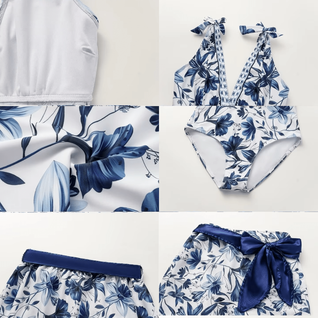 Includes: 1 x One-piece swimsuit + 1 x Matching Skirt